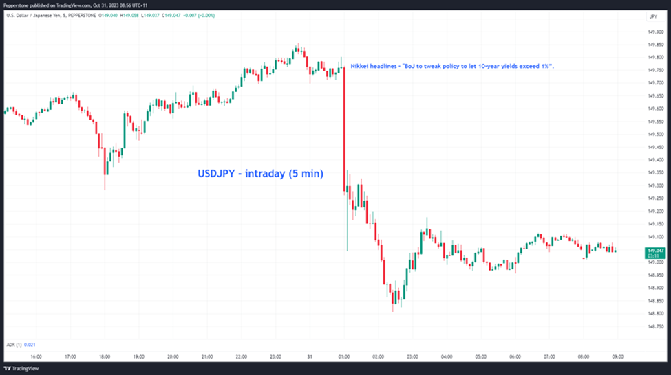 在等待现货JGB的反应时,我们已经看到日本10年期国债期货出现了强烈的抛售,日本10年期掉期升至1.15%,这表明市场已经准备好进行政策调整。日元的反应比我预期的更为明显, USDJPY汇率下跌了100个点,至148.81的低点,尽管后来汇率找到支撑并重新突破了149关口。