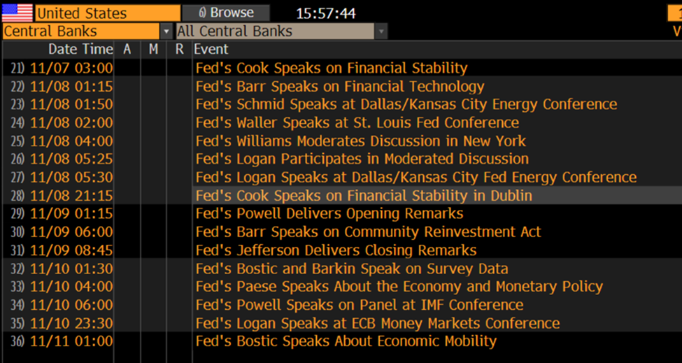 英国央行 – Huw Pill(11月7日 04:00 AEDT 和 11月9日 19:30 AEDT),行长Bailey(11月8日 20:30 AEDT)