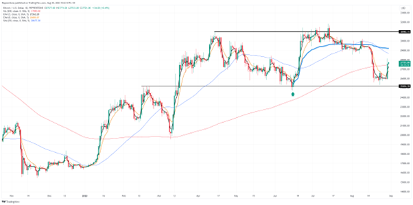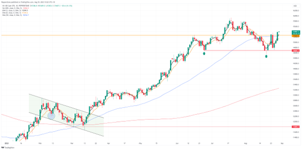 比特币 – 有消息称,美国法院推翻了SEC(美国证券交易委员会)阻止Greyscale从信托基金过渡到ETF的决定,该ETF跟踪比特币现货而不是期货,这引发了强烈的买盘兴趣。我们看到比特币最近守住了区间低位,并已攀升至27,700。要推出全新的现货ETF还需要付出努力,但我们确实更近了一步,而且在未来几天内我们应该会听到更多相关信息。做空方在进一步了解SEC对推出现货ETF的看法之前,可能会担心持有仓位,因此存在价格可能上涨至29,200的风险。