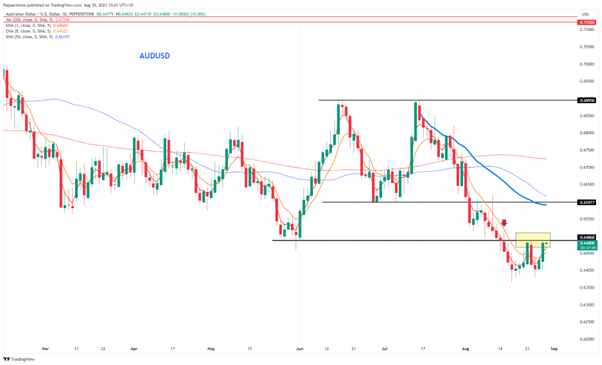 EURUSD – 在接下来的几天,我们将迎来德国CPI数据(今日 22:00 AEST)的发布,随后是欧洲CPI数据(周四 19:00 AEST),市场将关注欧洲核心CPI数据,预计为6.3%(较上期的6.5%略有下降)。最近,市场对欧洲央行收紧政策的预期有所减弱,目前预计9月14日的欧洲央行会议上加息的概率为50% – CPI数据将影响这一定价并对欧元产生影响。从技术面来看,我们看到价格在3月份的上升趋势支撑线和200日均线处出现了良好的买盘,日线动量指标也呈现出多头信号。考虑到欧盟的经济增长动力不足,很难对EURUSD的走势产生信任,但如果市场情绪继续保持积极,卖美元的力量可能会推动EURUSD升至1.0950/70。等到价格收盘跌破趋势支撑线,则偏向做空。