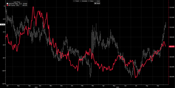 主要由于实际利率和美元走高,美国金融状况明显收紧,我们越来越多地认识到市场正在承担央行的重担,并取代了对央行提高政策利率的需要。这是我们上周从美联储成员Daly、Goolsbee和Bostic那里听到的信息。