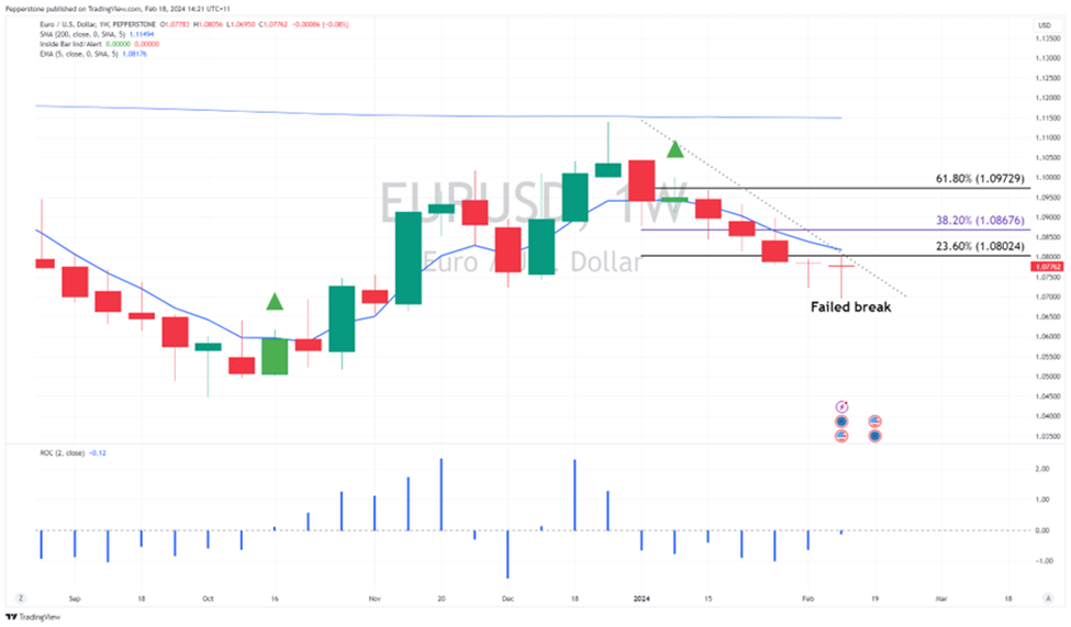 关于中国的风险代理主题,铜在本周表现出稳健走势,尽管我们看到价格接近3.80美元时出现卖压。原油也受到交易者的关注,价格周环比上涨了3.4%,正在测试1月29日的支撑位。在看涨通道中,我们看到趋势上方阻力位在80.50美元附近 – 这是一个值得关注的水平。