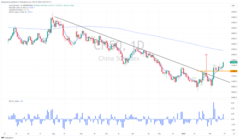龙年为中国股市带来了坚实的开局,尤其是在小盘股领域(中证500指数周同比上涨了10%),我们看到CN50指数有望进一步上涨,我预计会达到12,000点。尽管国家层面的资金流和中国人民银行的流动性支持了中国/香港股市,但经济数据确实很重要。因此请关注中国基准利率决定和新房销售数据,两者可能会影响本周的情况。