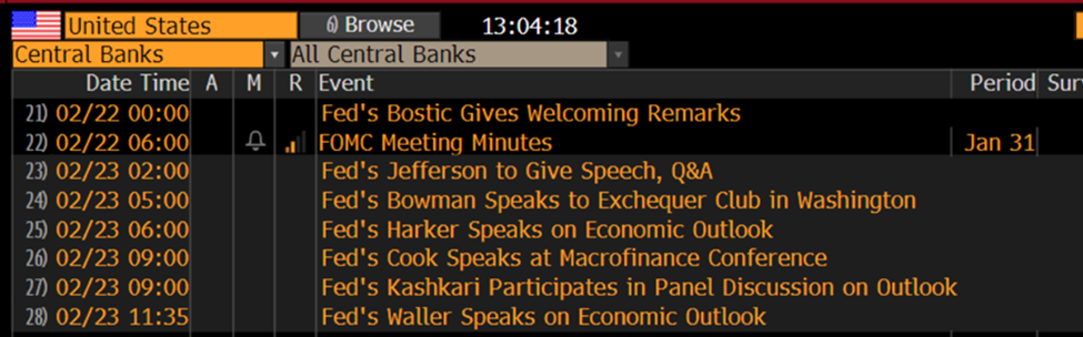 美国1月份零售销售下降了0.80%,这是一个不祥的转折,因为美国的CPI和PPI都远高于预期,这提醒我们美国核心PCE数据(预计于2月29日发布)月环比增长可能会超过0.4% – 如果一年前出现这种情况,可能会触发美联储加息25个基点。2月份的CPI数据(预计于3月12日发布)将受到极大关注,虽然距离发布还有一段时间,但这是值得在日记中标注的关键日期。