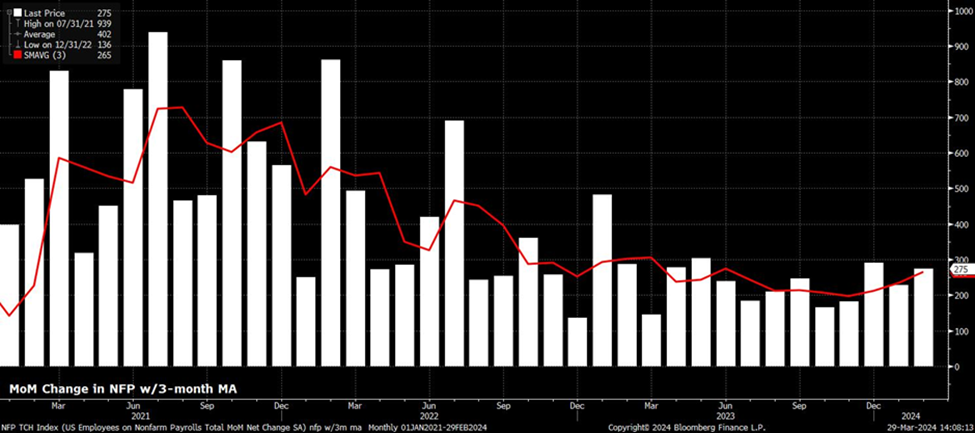 然而,从政策角度看,很难想象3月份的就业报告会对市场产生实质性影响,特别是考虑到鲍威尔主席最近已经提到,委员会确实预计今年余下时间力失业率会走高,并且FOMC双重目标的风险正在回到“更好的平衡”。目前,决定首次降息的关键因素仍然是对通胀回归2%目标的“信心”,在这方面,下一个CPI报告(定于4月10日发布)变得非常重要。