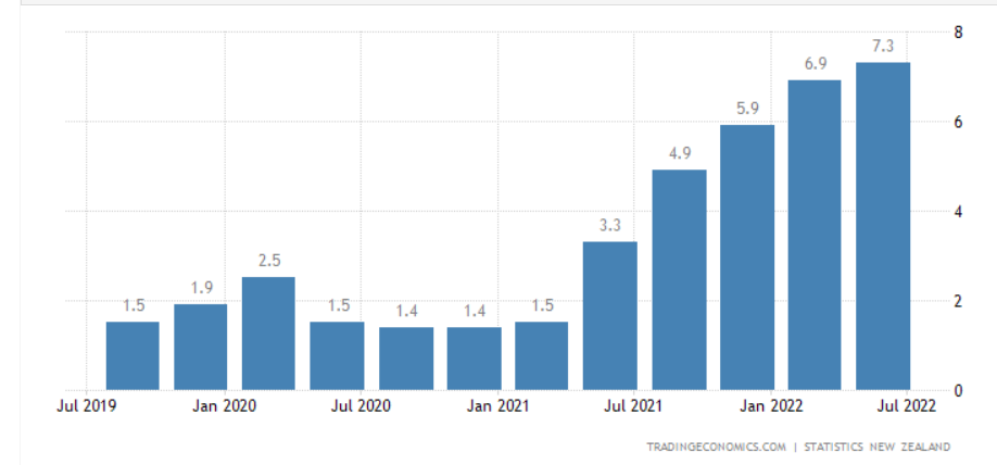 以新西兰为例:新西兰第二季度的CPI同比通胀率达到 7.3%,高于新西兰联储5月预测的 7.0%。市场上调新西兰基准利率OCR预测。在预计 OCR将在年底前达到 4%的峰值,这意味着还要加息3次。新西兰联储今年还有三场货币政策会议——8 月17日、10月5日和 11 月23日。预期可以看到新西兰联储(RBNZ)在 8月和 10月和11月再次分别加息 50 个基点。