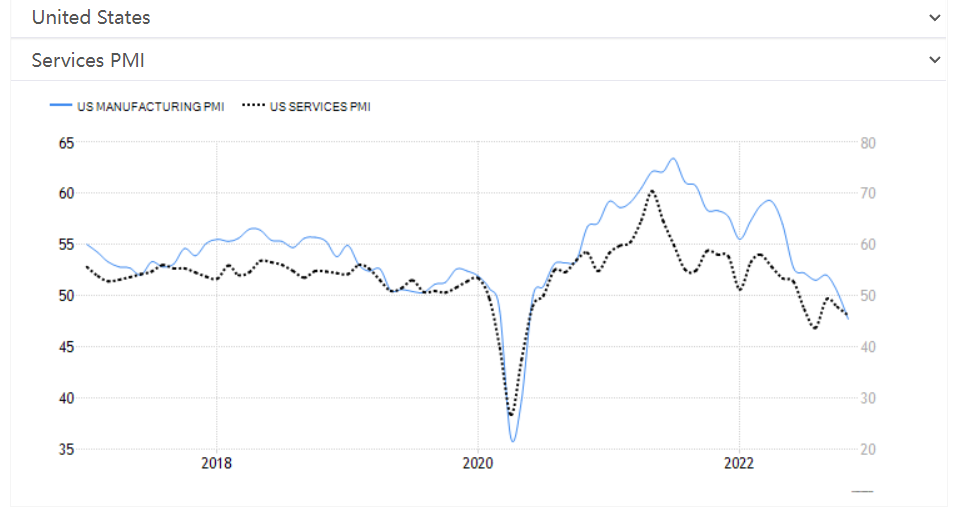(美国制造业服务业PMI均跌破50)
