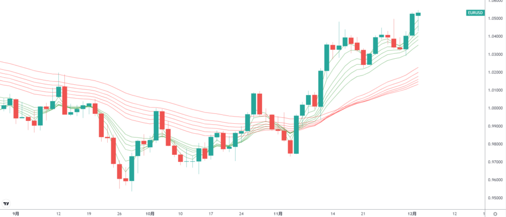 很明显在拉加德眼中,通胀才是更为紧迫的事件!EUR/USD在周五非农数据的短暂冲击过后进一步走高,已经突破1.02-1.04的上升三角形整理阶段。日图中的GMMA均线已经形成短期上升强劲且长期也转变为多头的特点,预计未来EUR/USD前景向好。