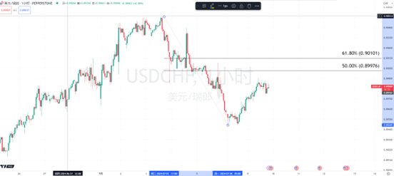 部分交易员在周末之前一直在做多瑞郎,以对冲法国第二轮投票的影响。结果出来之后,这部分避险交易平仓导致瑞郎短期走低。美元兑瑞郎从8号开始反弹上涨,已经突破下跌回撤的38.2%位置。随者避险情绪进一步退去,冲击0.9100也未尝不可。