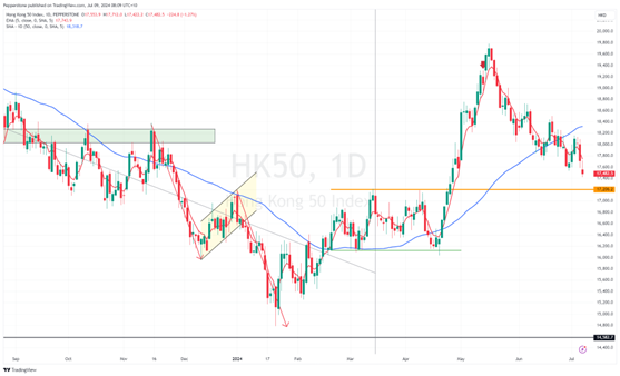 HK50 则朝着相反的方向发展,交易价格处于 4 月底以来的最低水平,自 5 月中旬以来一直处于看跌趋势中,这种情况下,小型反弹将被视作加码抛售的机会。