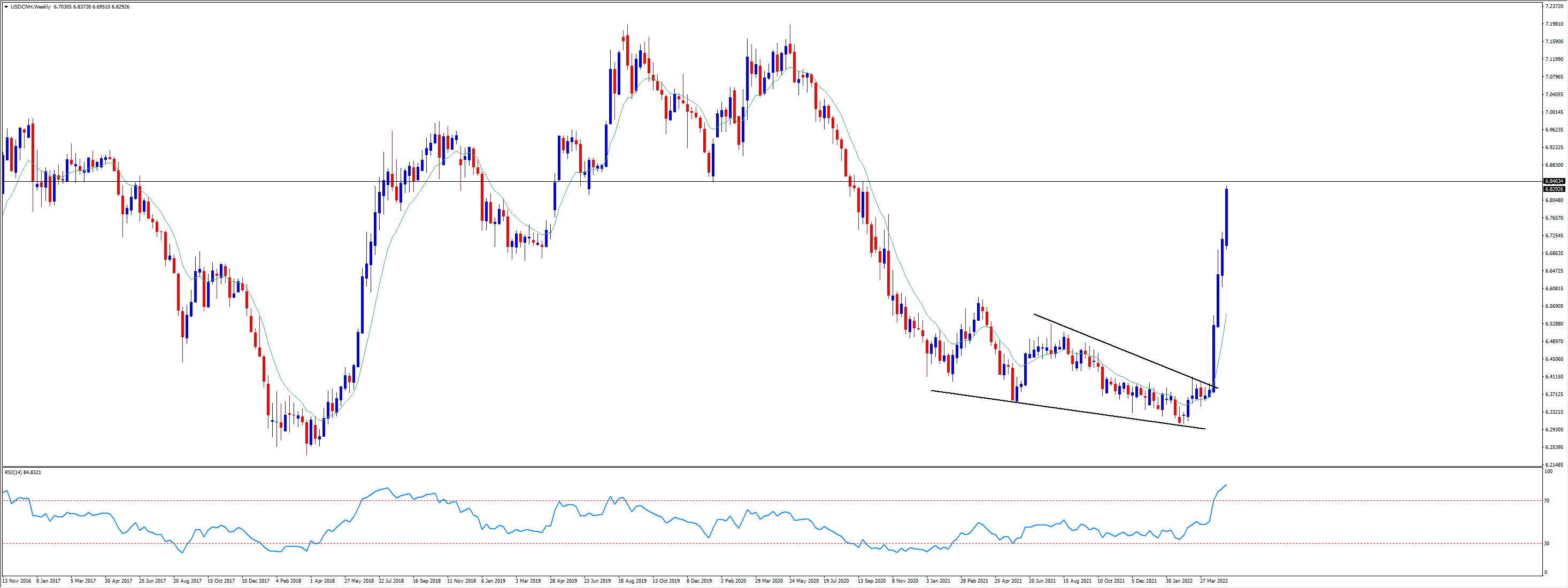 USDCNH周线图