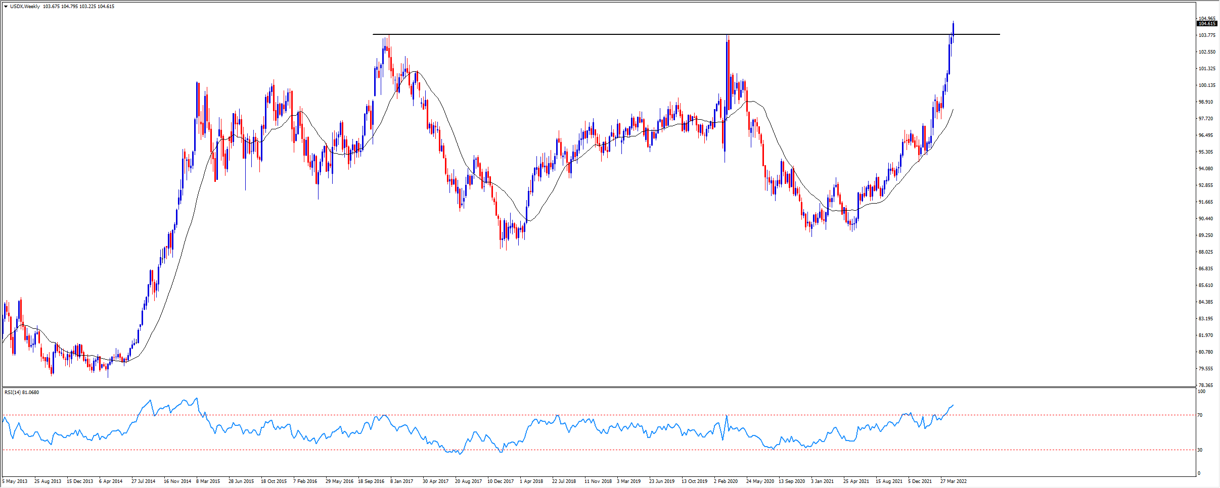 美元指数(USDX)周线图