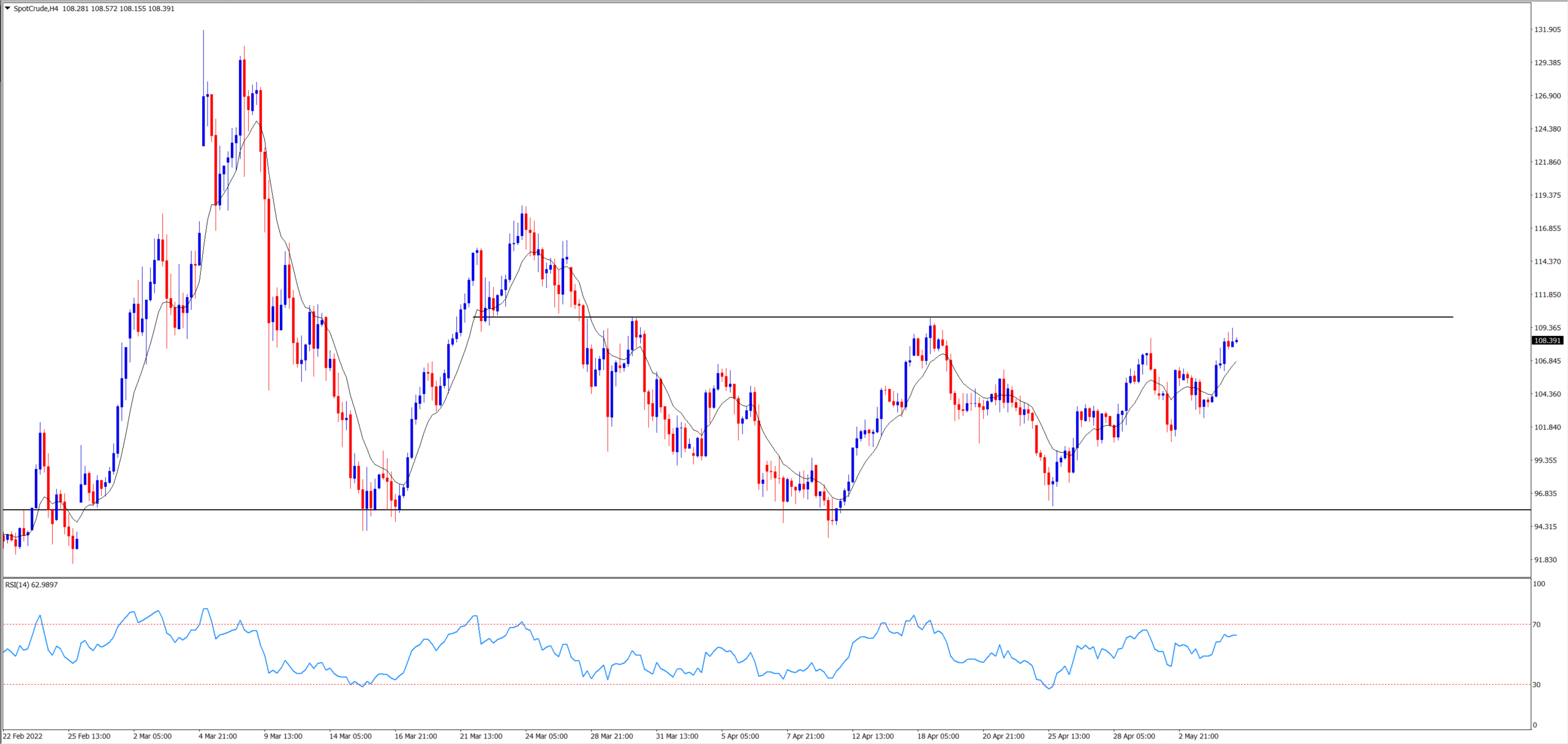 欧美和俄罗斯之间的制裁和反制裁或将继续让油价保持高位震荡,WTI原油正面临110一线阻力。如果油价进一步升高,对通胀的担忧将继续对美联储施压,美元或将受益。