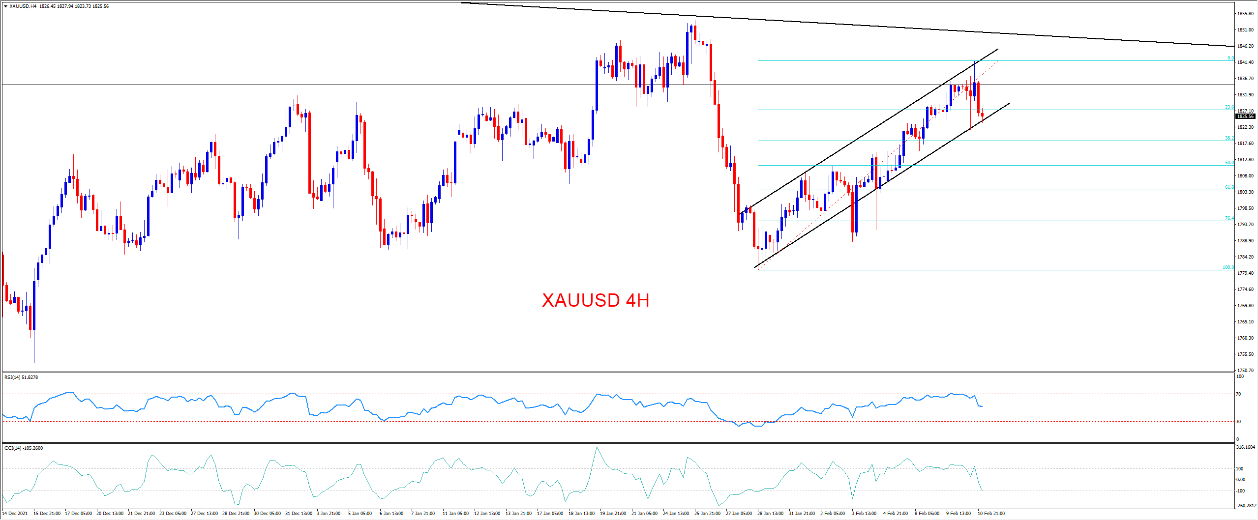 黄金结束了四连阳,终于“部分匹配”了收益率上升的行情,1小时级别的RSI背离得到修正。若金价跌破通道下轨,或将测试1818及1810等支撑。